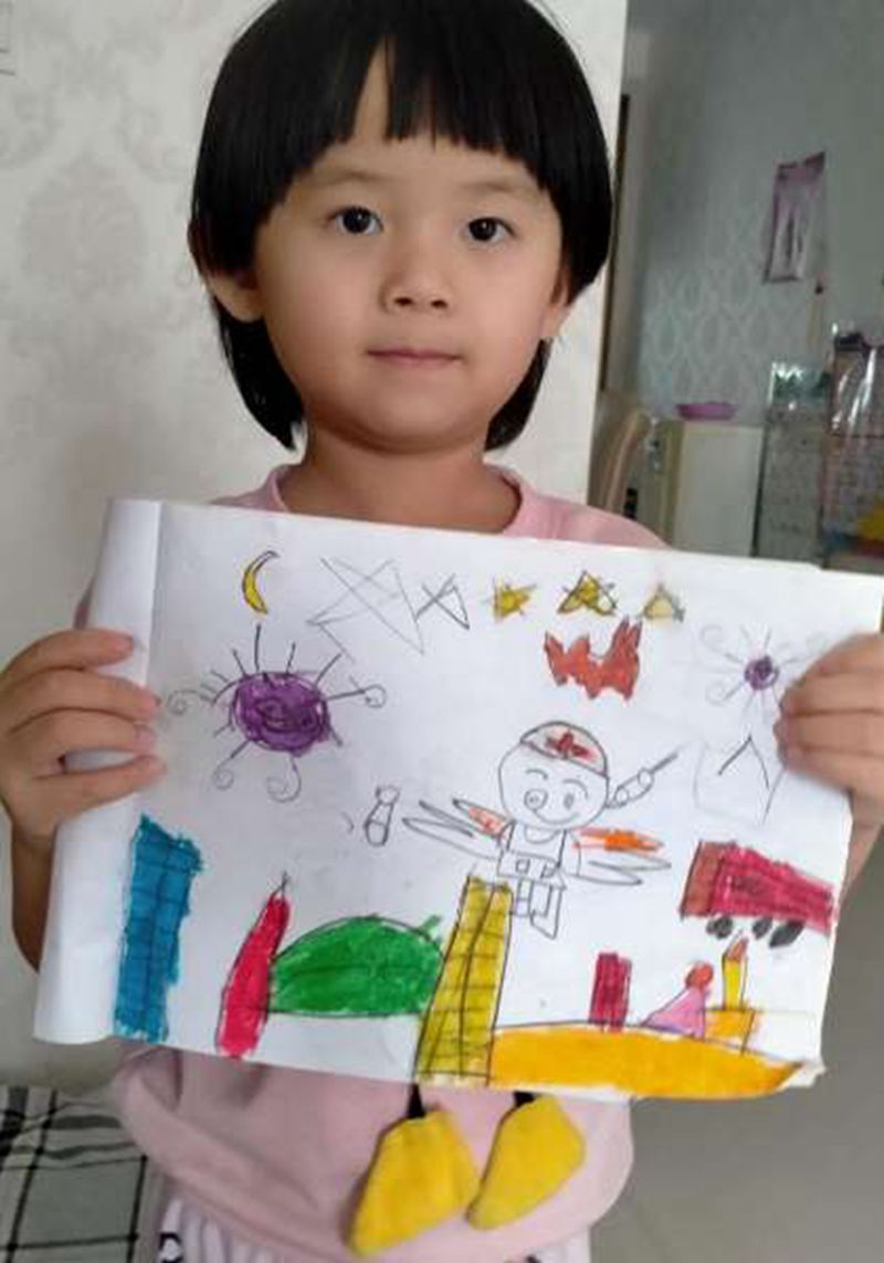 而在孩子們的世界里,這些不讓爸爸“回家”的病毒,是怎么樣的呢?近日,新疆巴州森林消防支隊居家的孩子在家人的幫助下拿起自己最愛的畫筆,用自己獨特的方式,把這幾天聽到的防疫知識、戰(zhàn)疫故事,畫成一幅幅充滿童趣而又飽含深情的繪畫作品,給白衣天使們吶喊助威,為中國加油!為武漢加油!也為這場“戰(zhàn)疫”添上自己的一份力。下面,就讓我們來看看這些有愛的“萌娃”作品吧!
