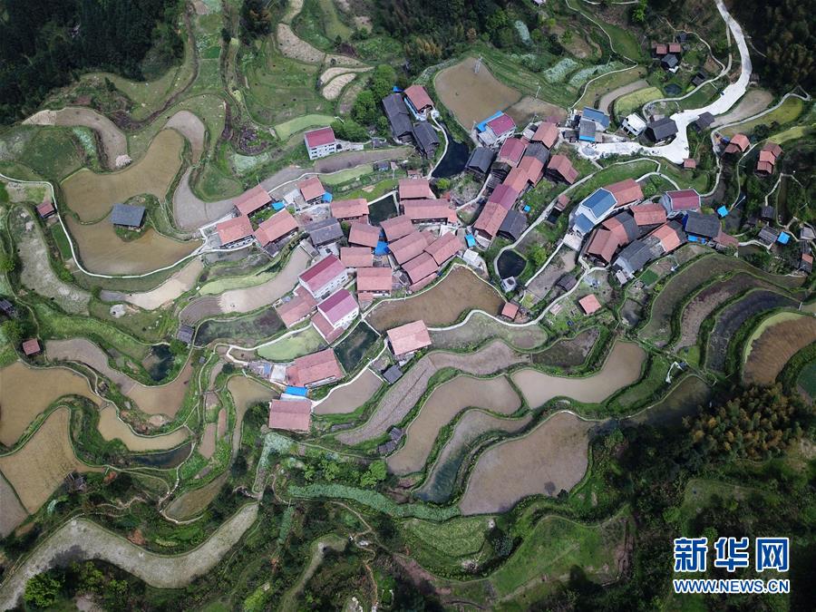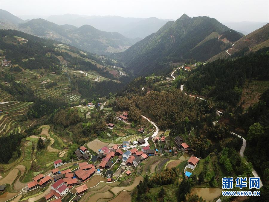 貴州省錦屏縣固本鄉(xiāng)東莊村苗寨春色(4月6日無人機拍攝)。春日時節(jié),地處貴州省黔東南苗族侗族自治州錦屏縣固本鄉(xiāng)大山深處的東莊苗寨春意盎然,梯田雨水充盈,層層疊疊,與紅瓦灰墻的新農(nóng)村民居相互映襯,美若畫卷。