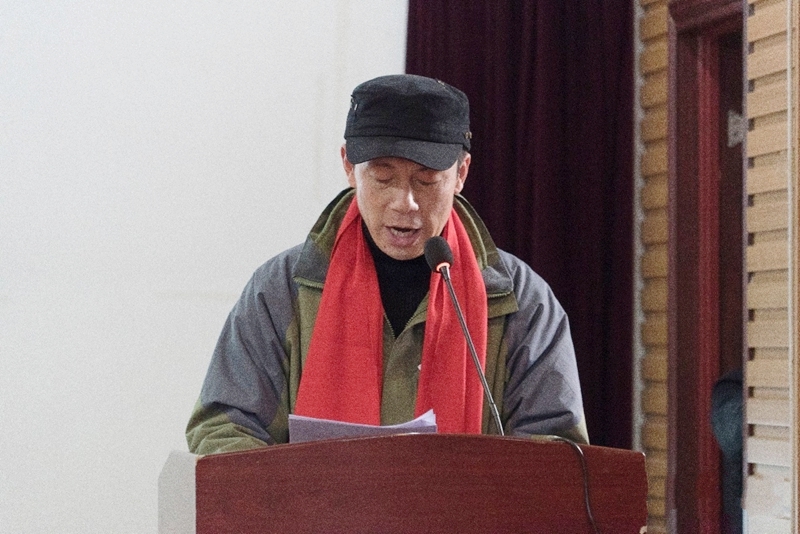 劉延明宣讀《沂南縣沂蒙兵媽媽擁軍協(xié)會籌備工作報告》