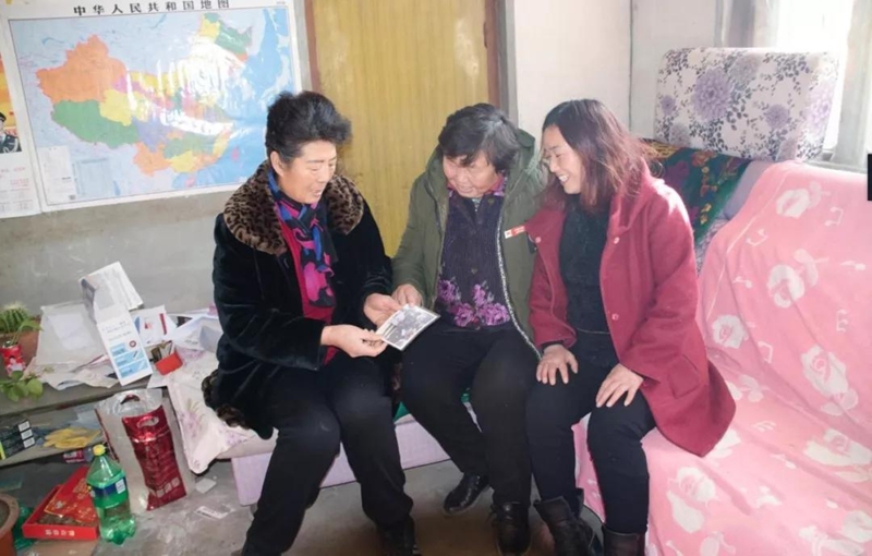 岸堤社區(qū)紅光村 “兵媽媽”楊立英(右一)趕到村外迎接協(xié)會人員